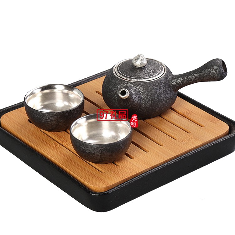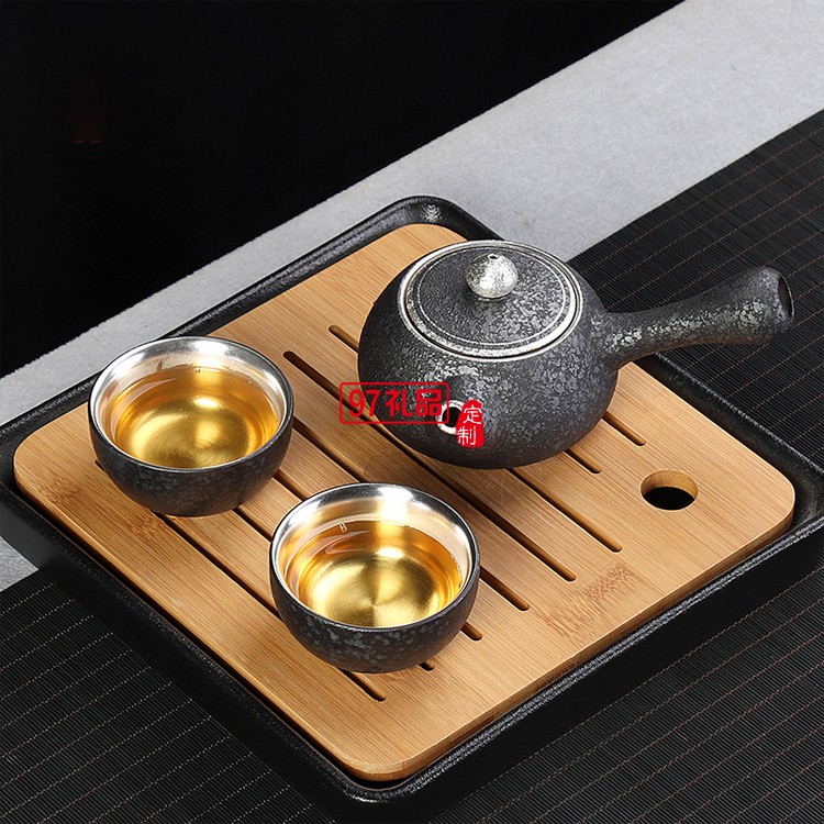 999純銀快客杯一壺二杯2人粗陶瓷功夫日式辦公室便攜旅行茶具套裝