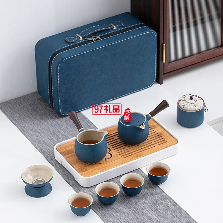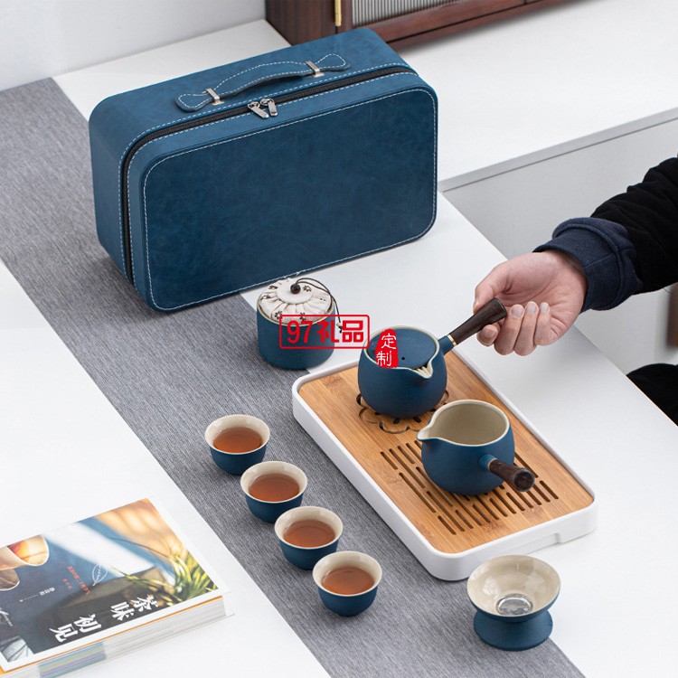 側(cè)把壺旅行茶具套裝戶外家用便攜式收納黑陶功夫茶具