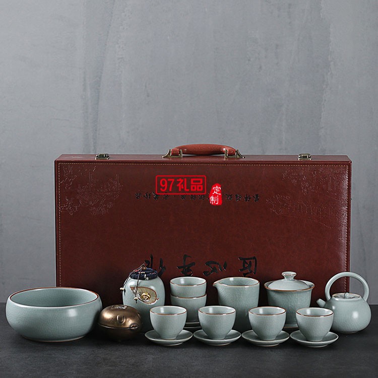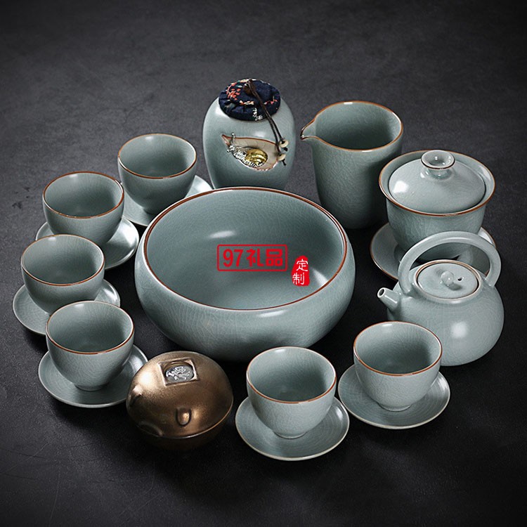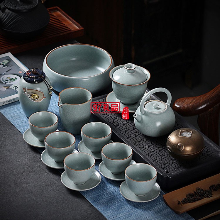 功夫茶具套裝開片汝窯茶器禮品茶葉罐茶洗大套組陶瓷茶具logo定制