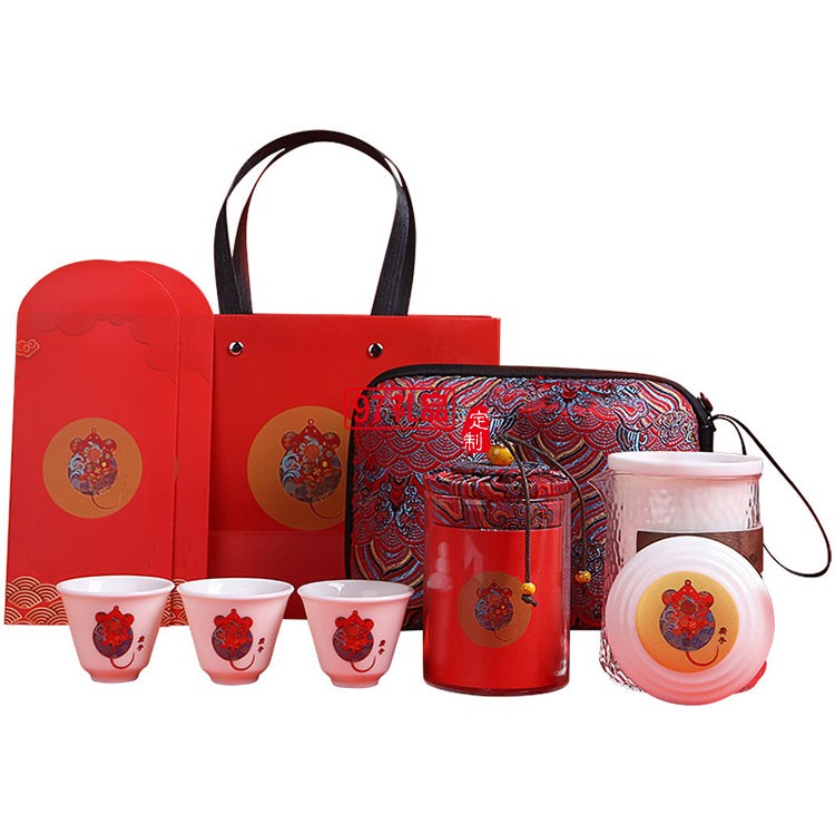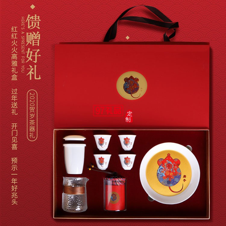 創(chuàng)意旅行茶具套裝家用2020鼠年賀歲茶禮茶壺茶杯陶瓷便攜式快客杯