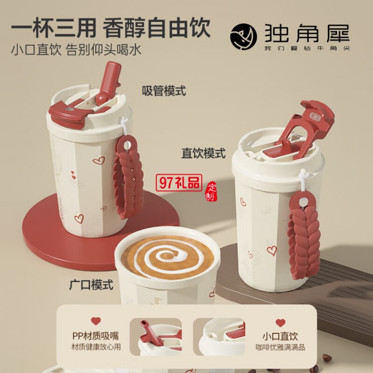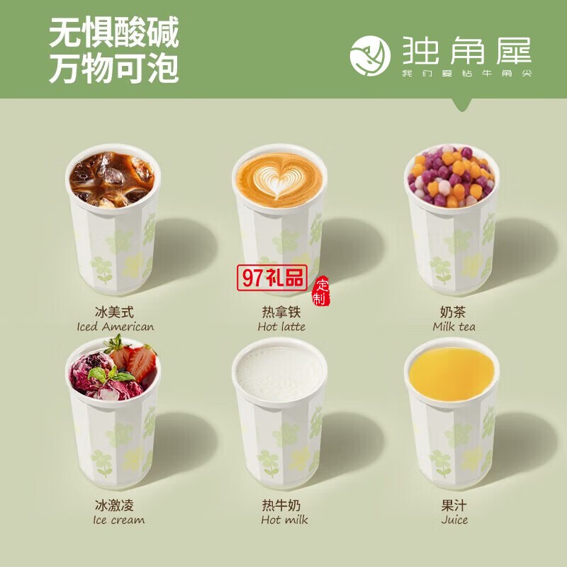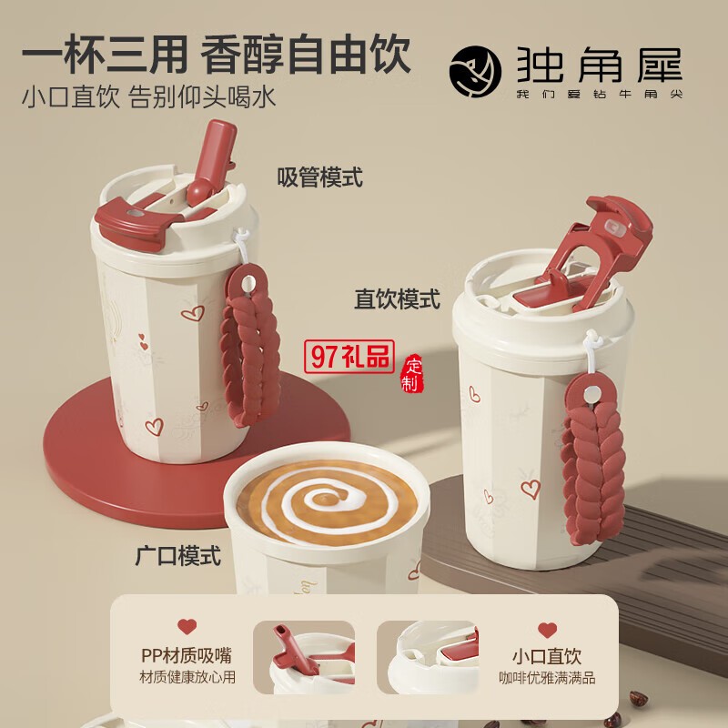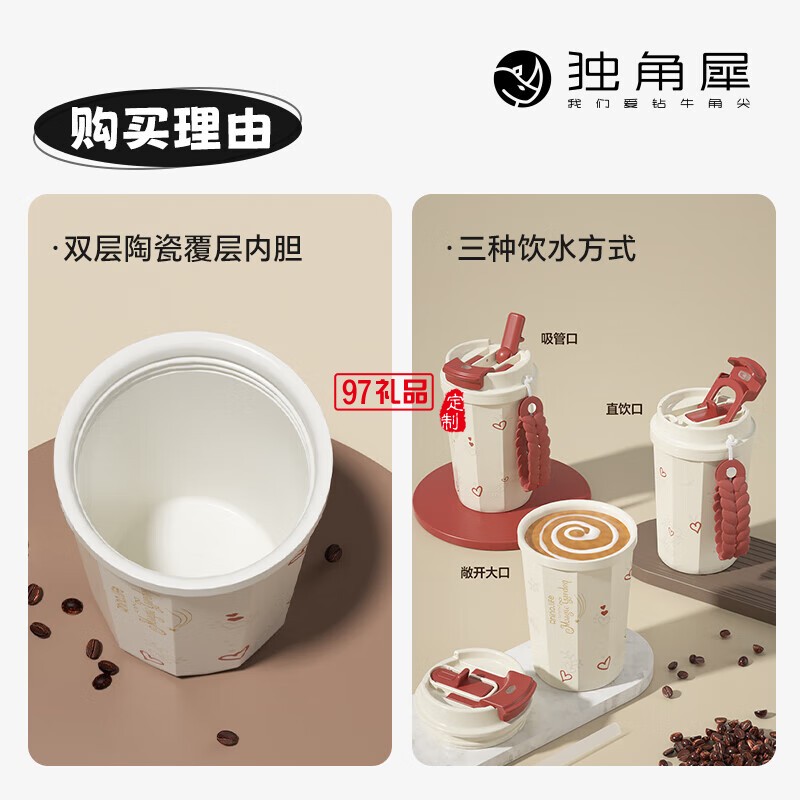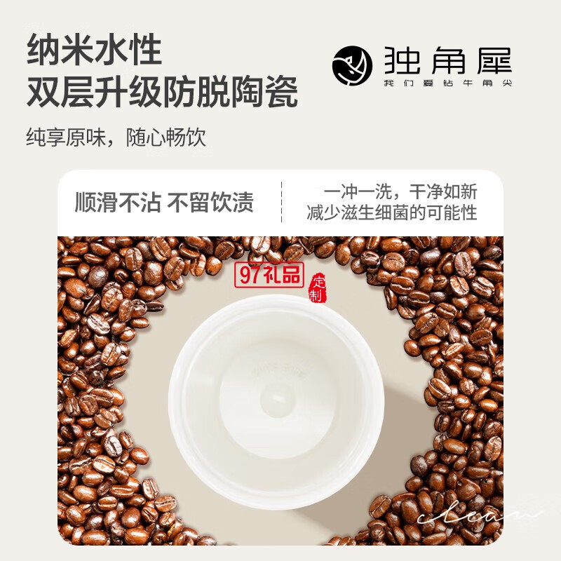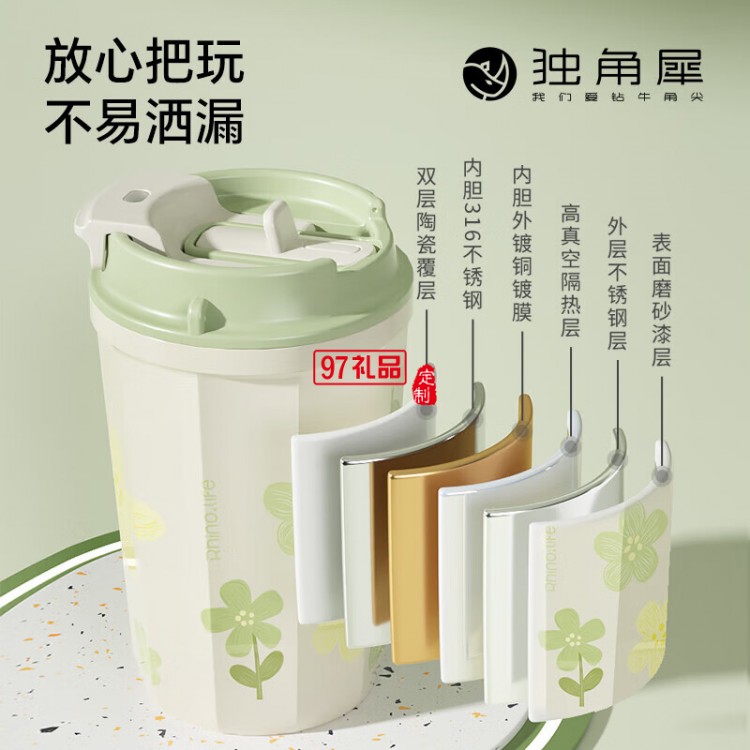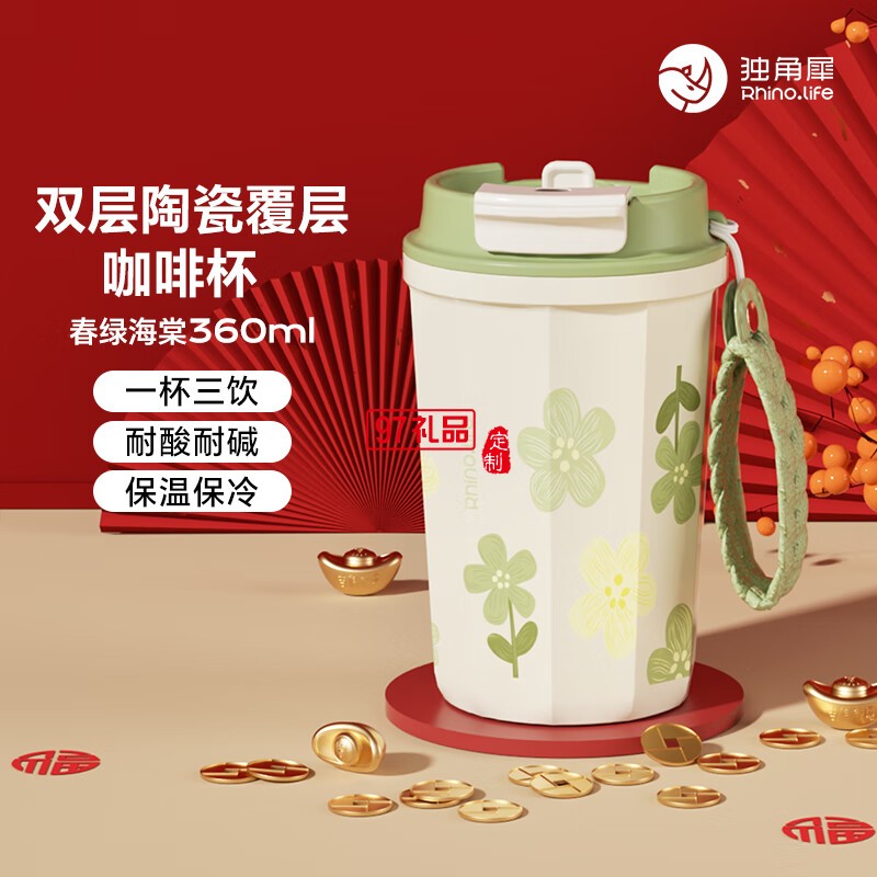 獨(dú)角犀春綠海棠雙飲口陶瓷內(nèi)膽咖啡杯