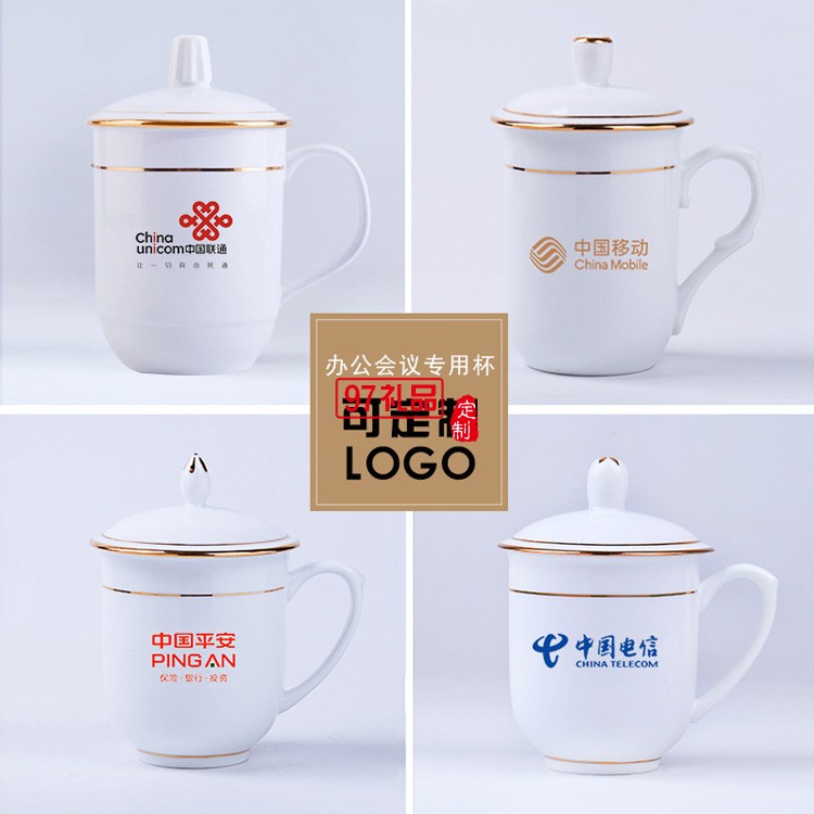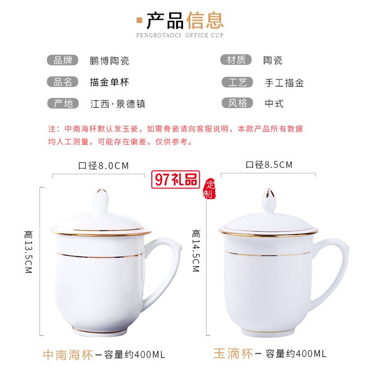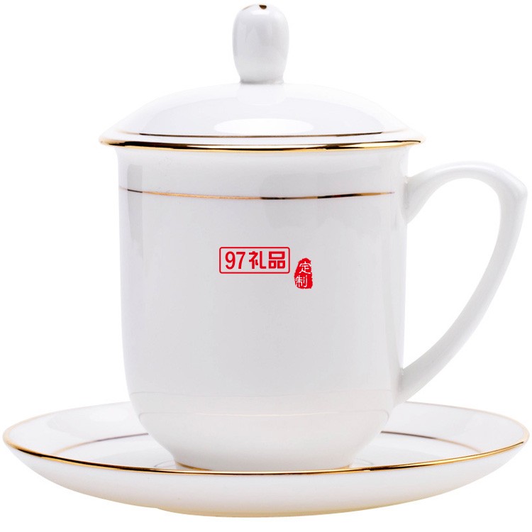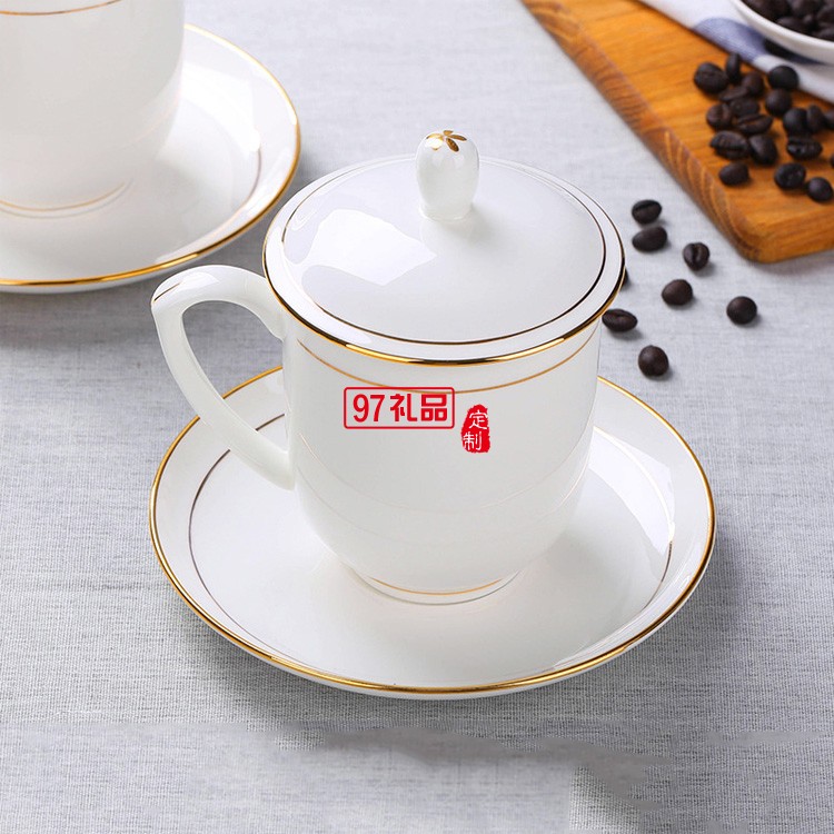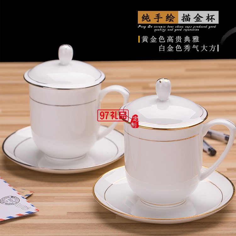 茶杯陶瓷帶蓋喝水杯酒店瓷辦公杯會(huì)議室泡茶杯子送客戶禮品定制