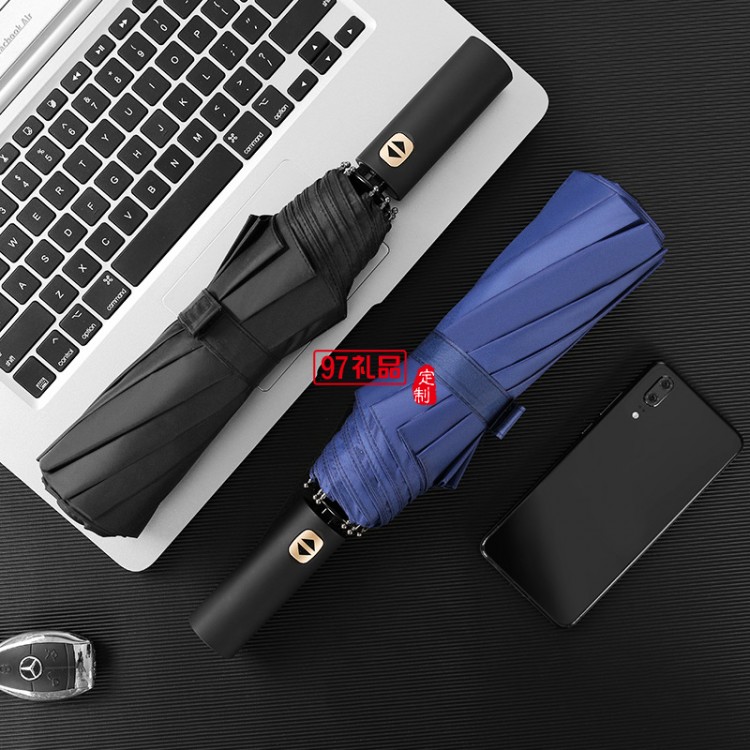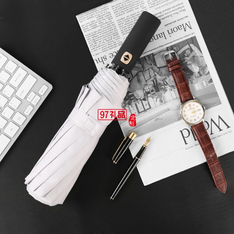 10k黑膠全自動(dòng)折疊小清新雨傘金柄三折遮陽(yáng)傘