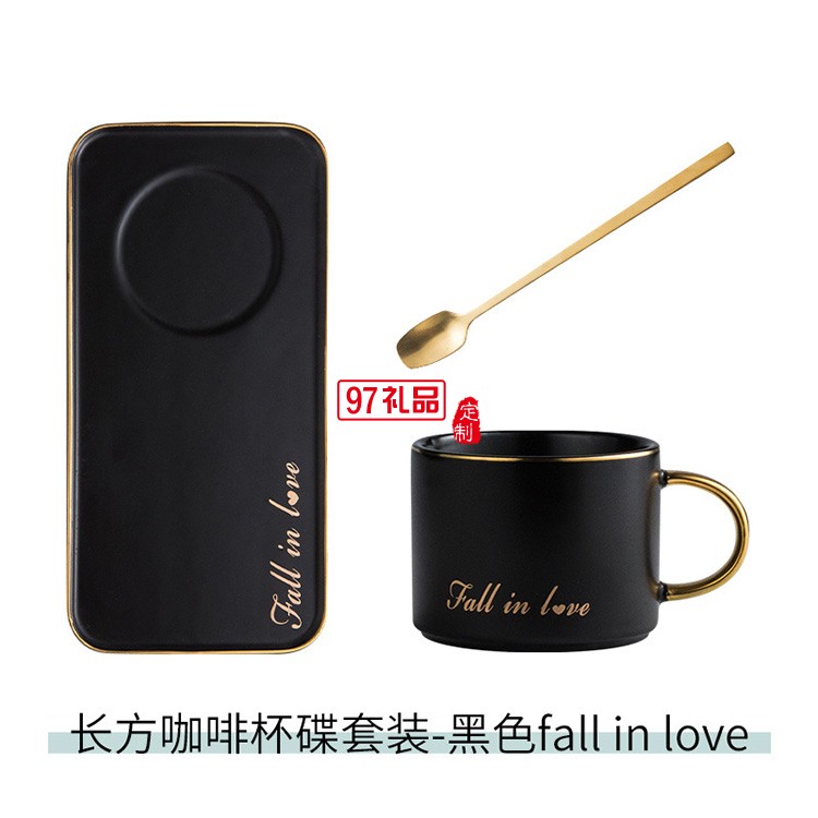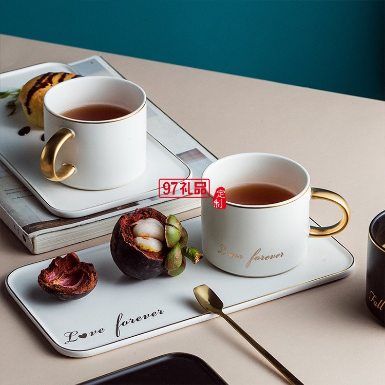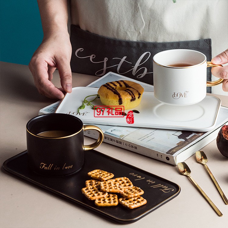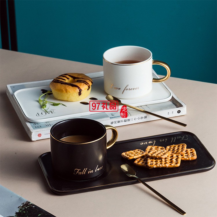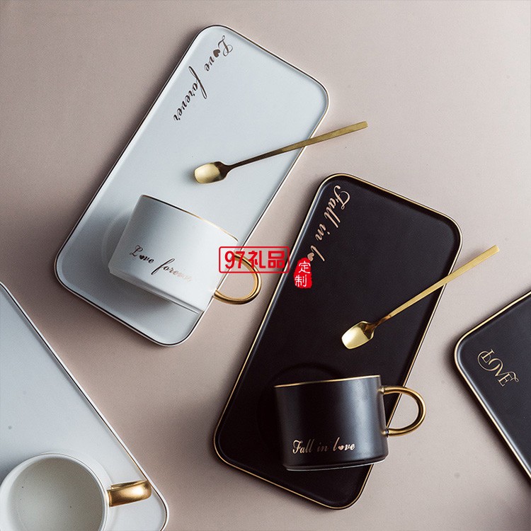 新品咖啡杯碟套裝ins陶瓷金邊馬克杯帶金勺 陶瓷杯 可定制logo