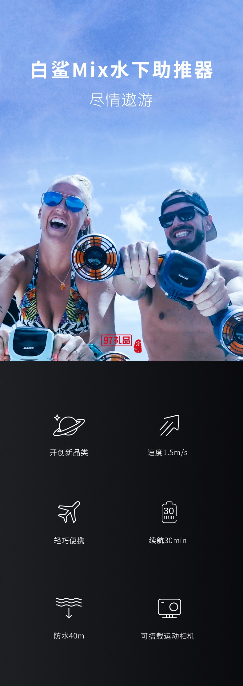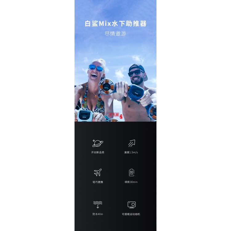 白鯊Mix水下助推器 輕巧便攜可搭載運(yùn)動(dòng)相機(jī)