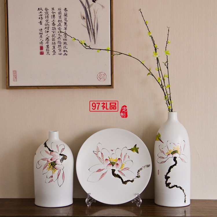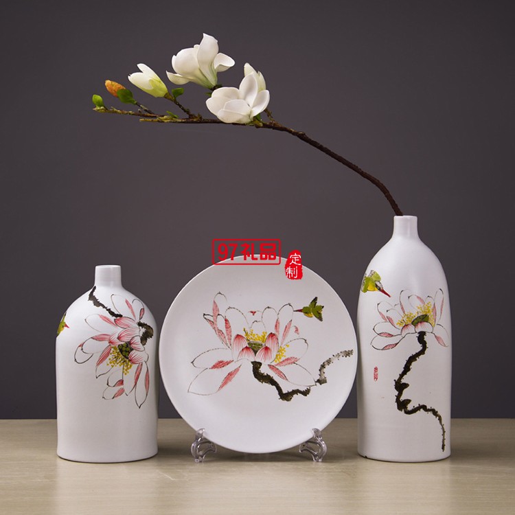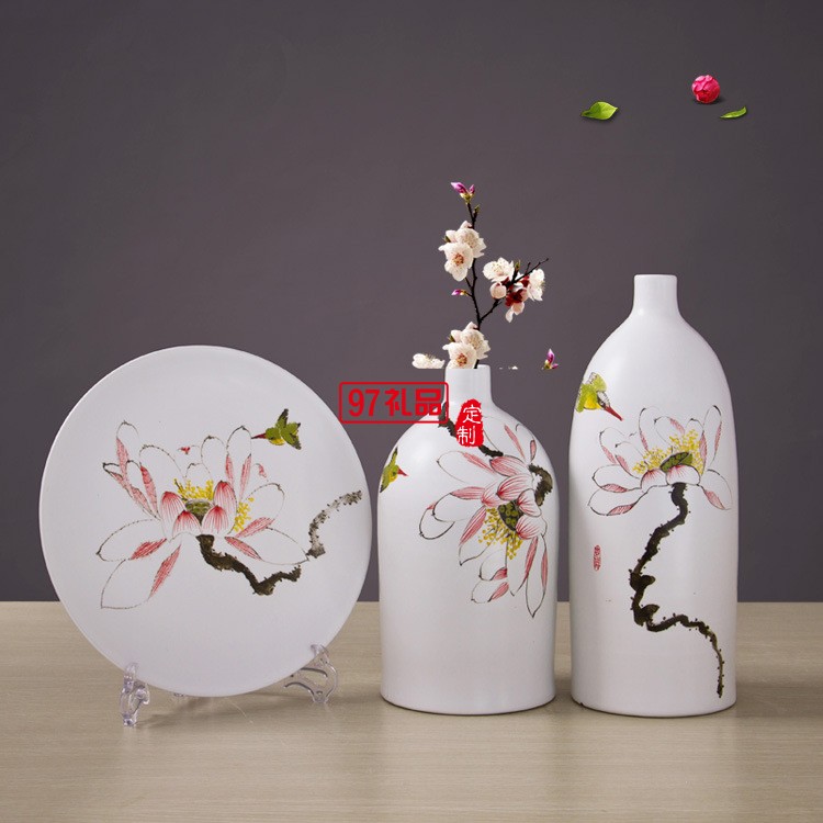 景德鎮(zhèn)陶瓷工藝品 時(shí)尚客廳家居手工擺件陶藝三件套花瓶花插