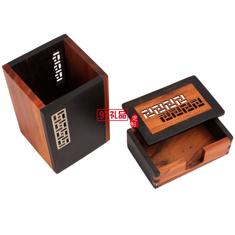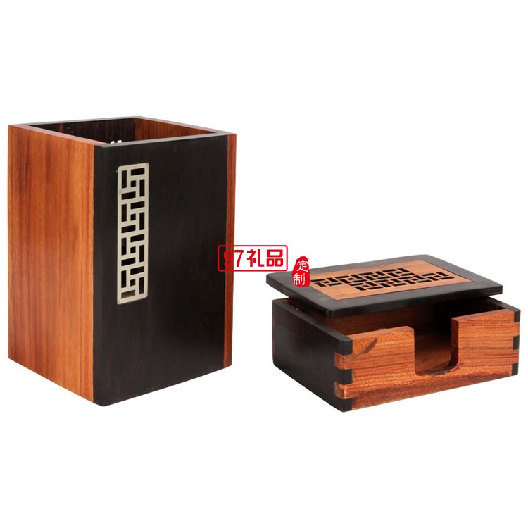 品名:高檔紅木二件套(筆筒+便簽盒)