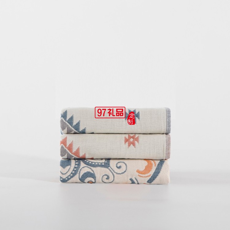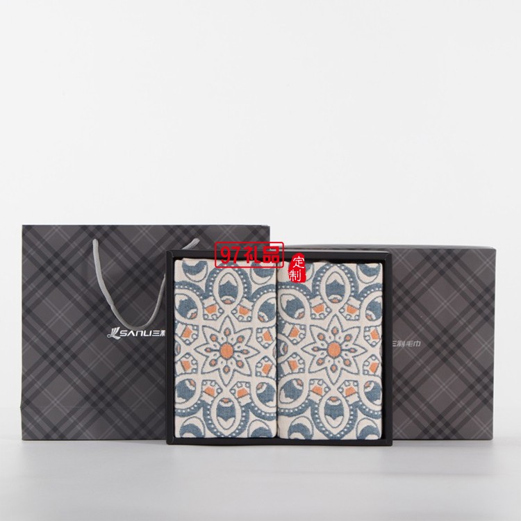 三利 枕巾禮盒2條 純棉四層紗太陽(yáng)花枕巾套裝定制公司廣告禮品