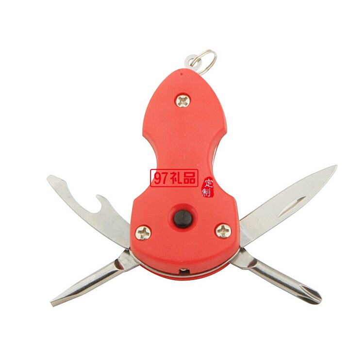 【產(chǎn)品功能】:開瓶器(附帶一字螺絲刀)、小刀、LED燈、一字螺絲刀、十字螺絲刀、鑰匙圈