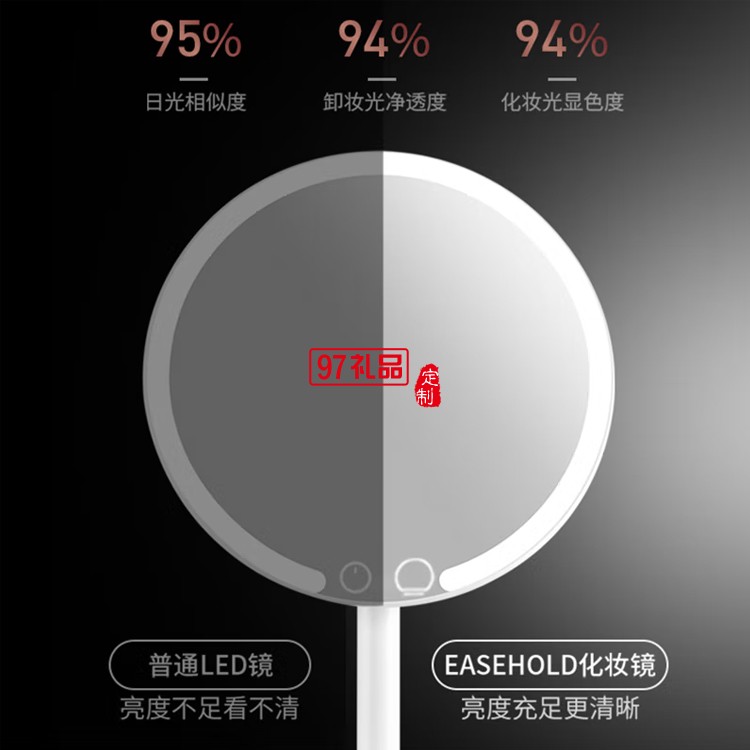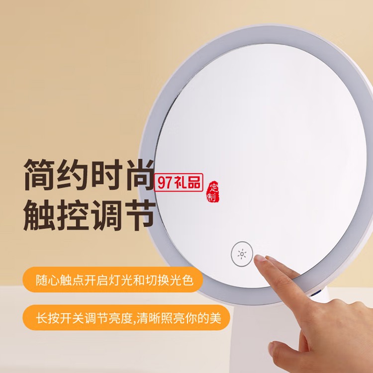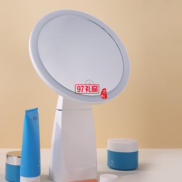 臺式化妝鏡帶燈 桌面旋轉(zhuǎn)調(diào)光智能補(bǔ)光梳妝鏡,定制公司廣告禮品