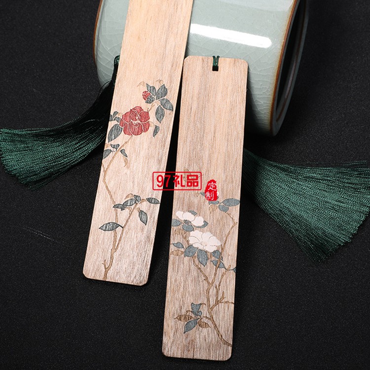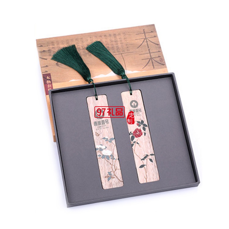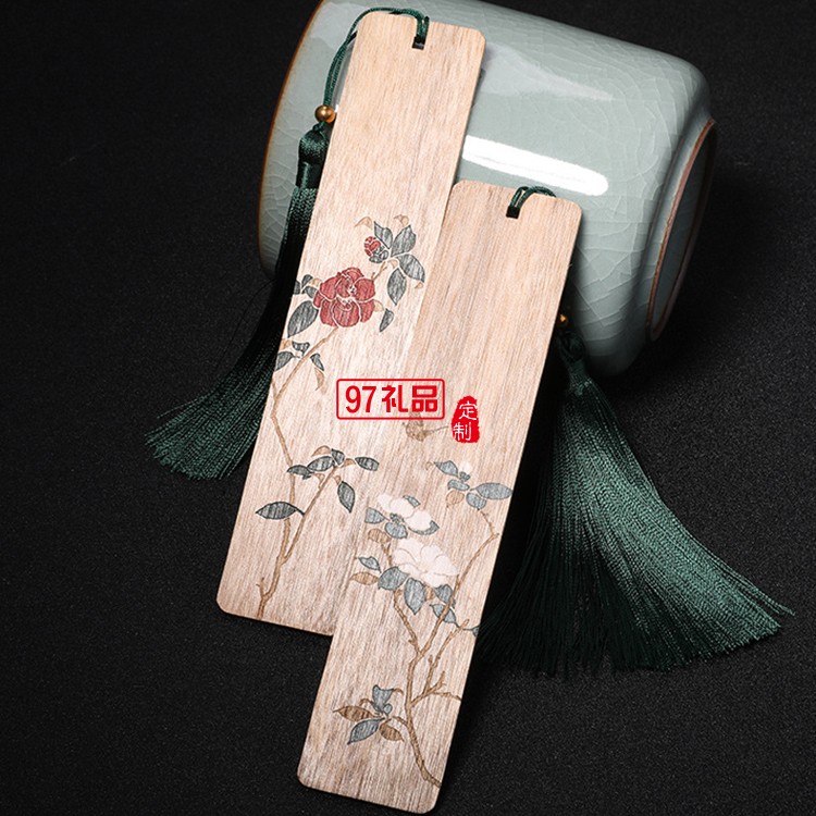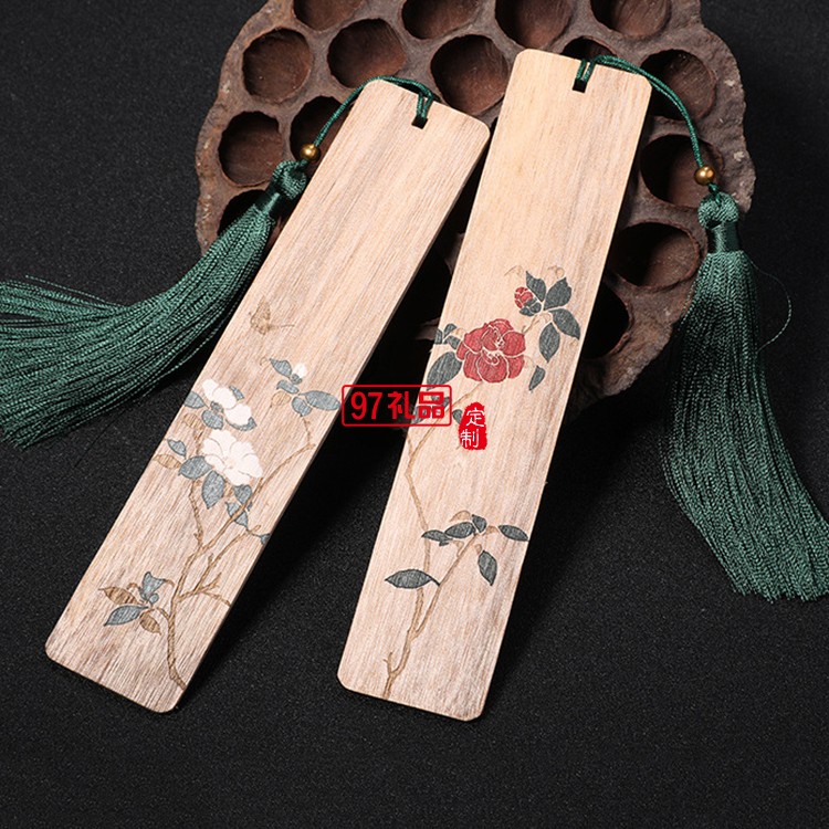蝶戀花金絲楠木書簽 定制木質(zhì)對(duì)簽