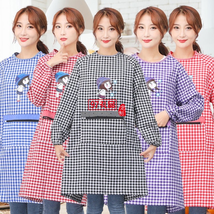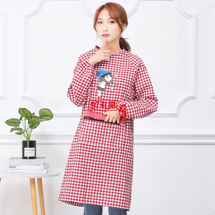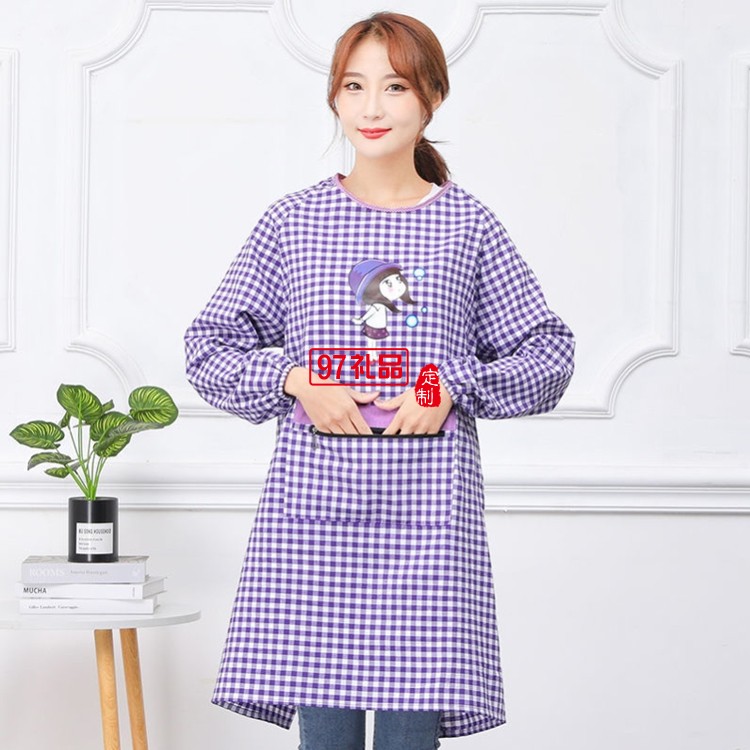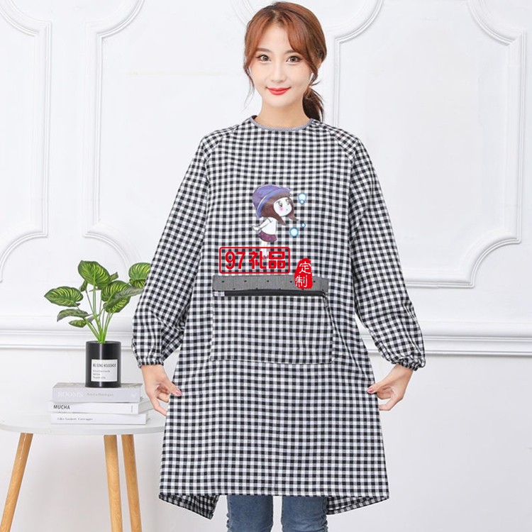 罩衣圍裙女長(zhǎng)袖防污防油反穿成人廚房純棉罩衣圍腰定制公司廣告禮品