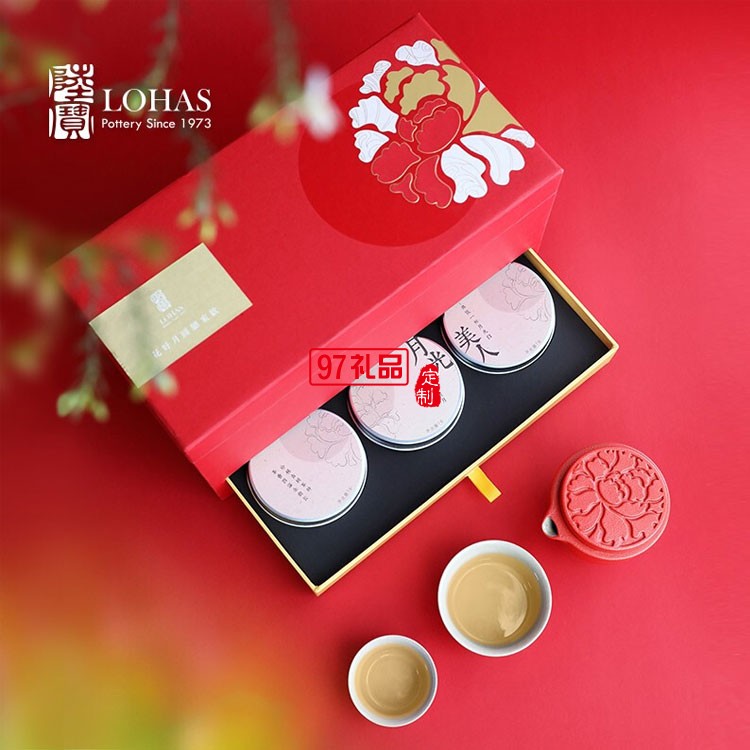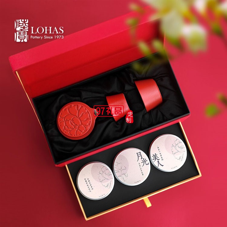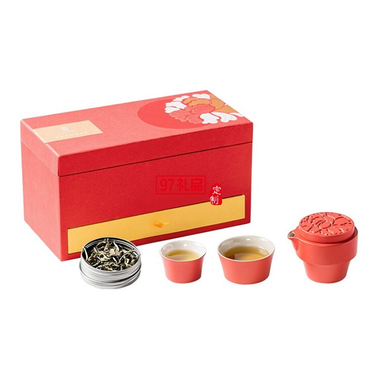中秋茶具禮盒搭配茶葉 陶瓷茶具加白茶