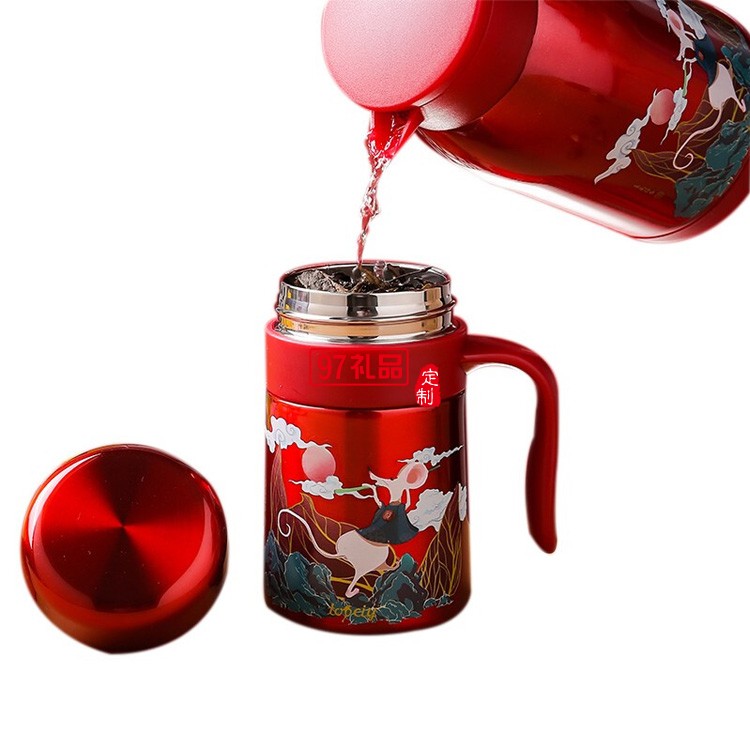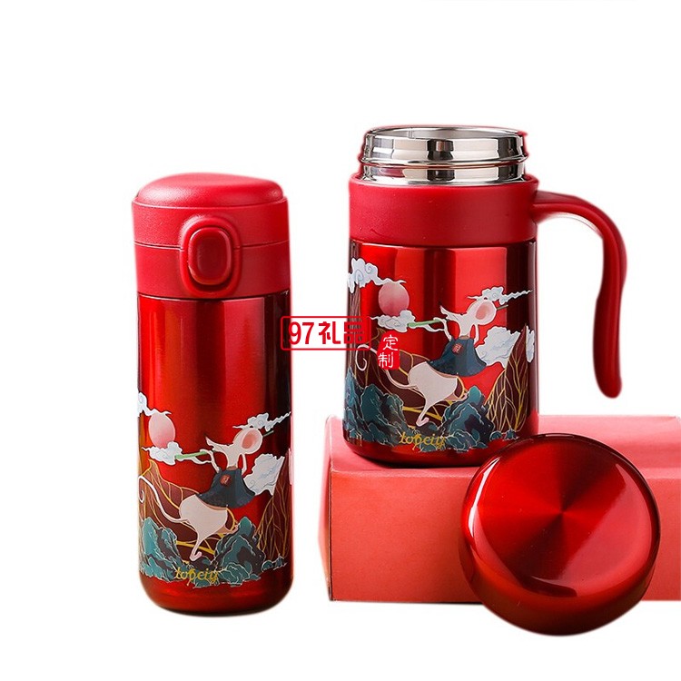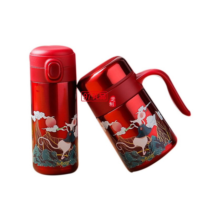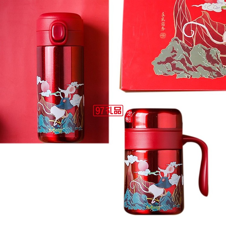 福瑞保溫杯套裝新年紅商務(wù)禮品年會禮品logo定制
