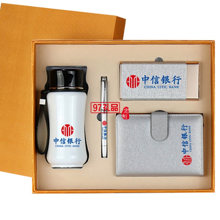 中信銀行定制案例 蠶絲商務(wù)四件套 保溫杯 筆記本 移動電源 簽字筆