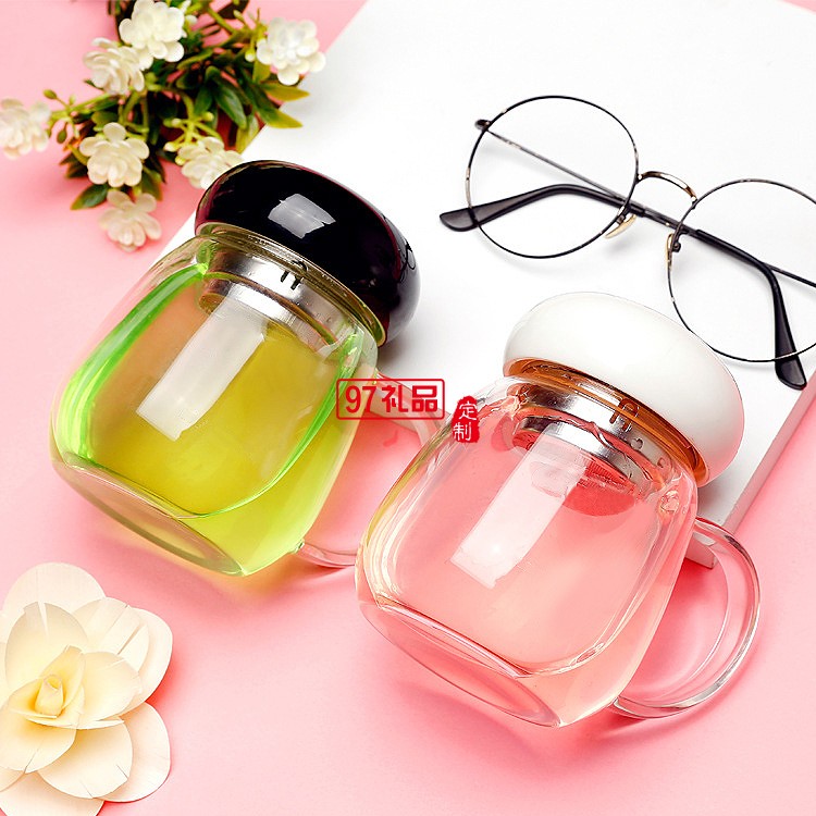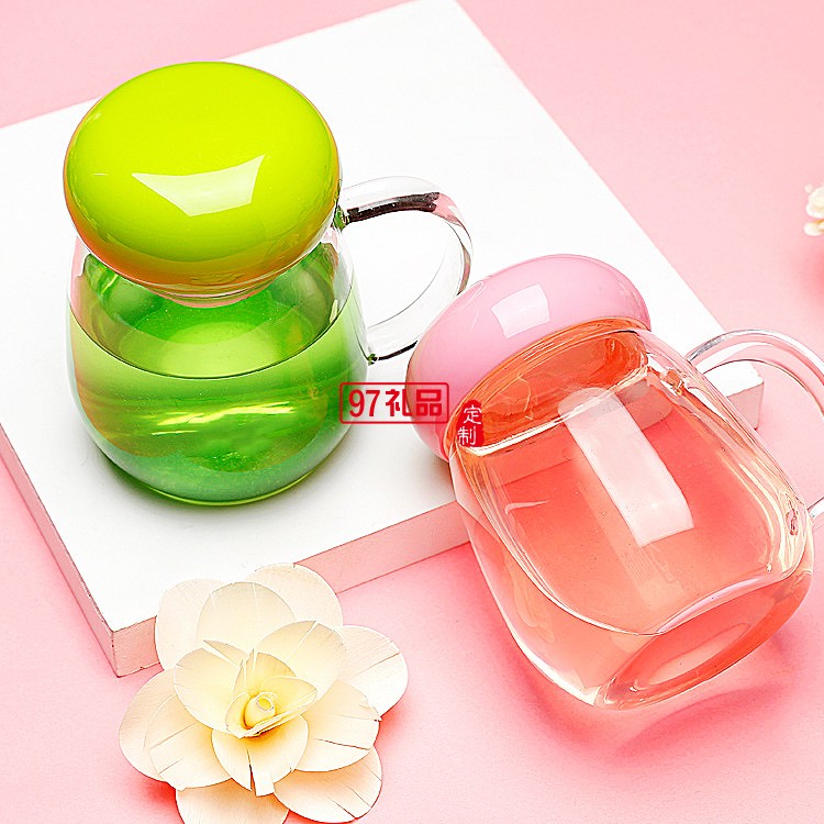 簡約花茶杯 時尚把手玻璃杯 創(chuàng)意隨手杯鷹速國際定制