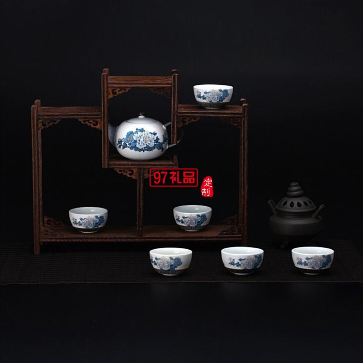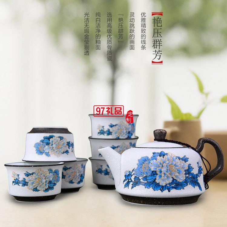 功夫茶具套裝 7頭艷壓群芳陶瓷茶具 可定制LOGO