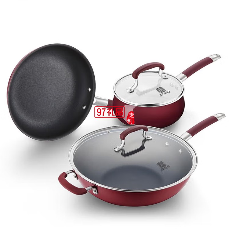 三禾鍋具T610套裝陶鑄等離子琺瑯不粘鍋三件套定制公司廣告禮品