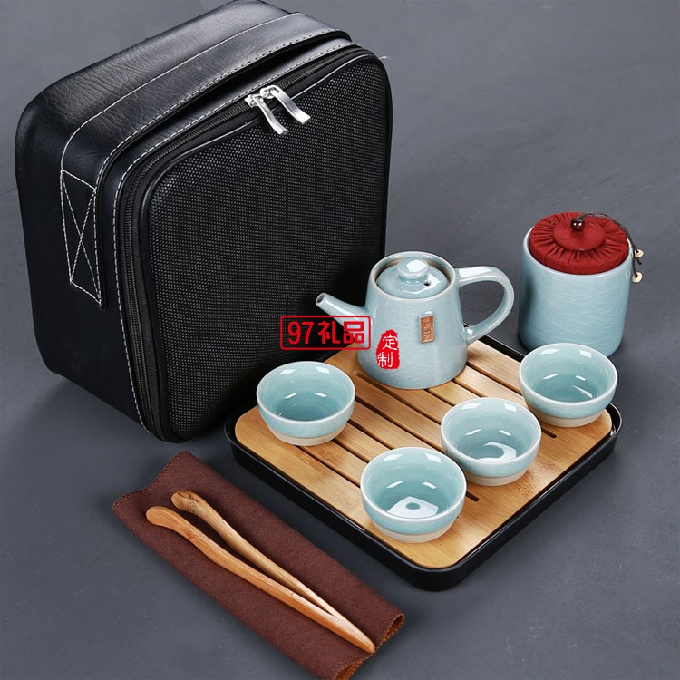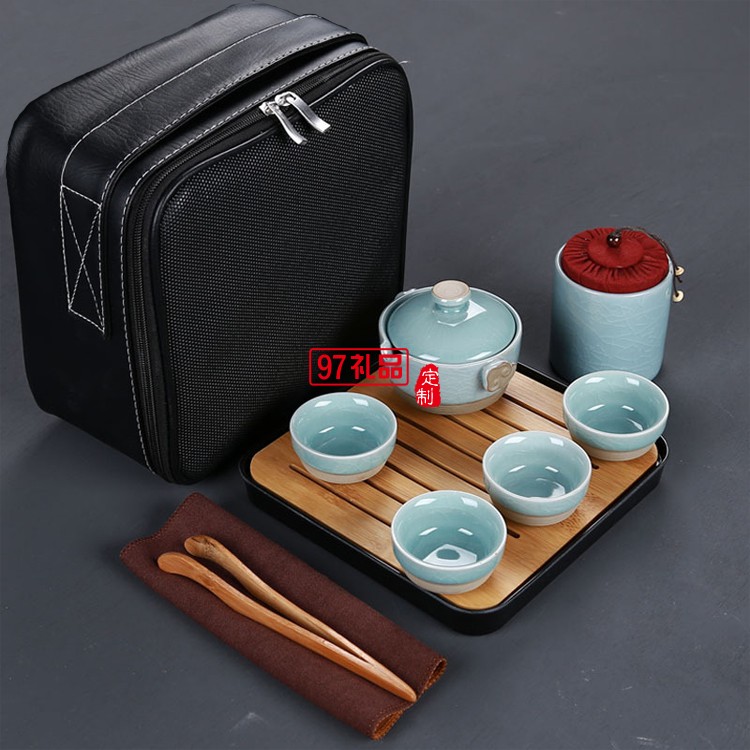 哥窯陶瓷茶具套裝 便攜式快客杯一壺4杯配旅行包