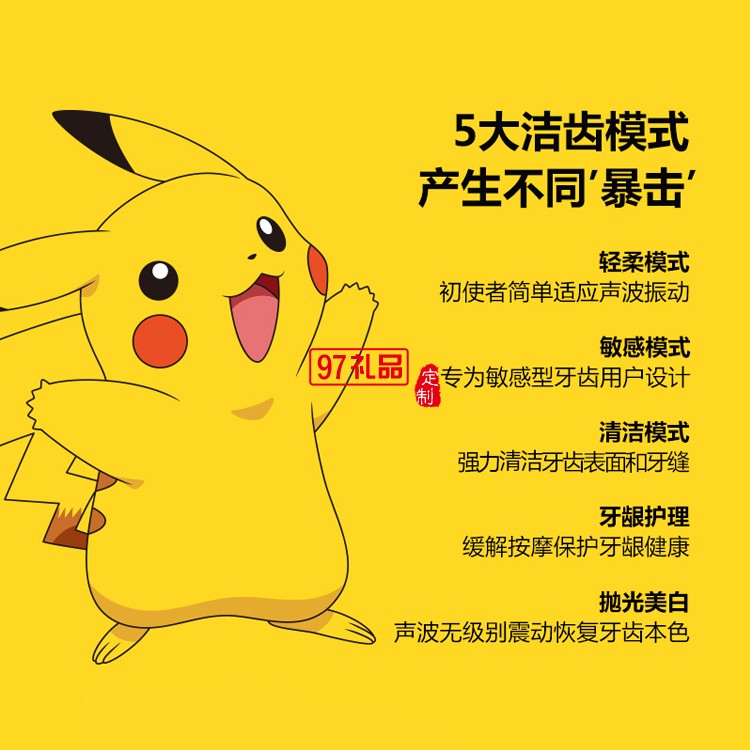 艾優(yōu)皮卡丘聯(lián)名成人款座充聲波充電式電動(dòng)牙刷定制公司廣告禮品
