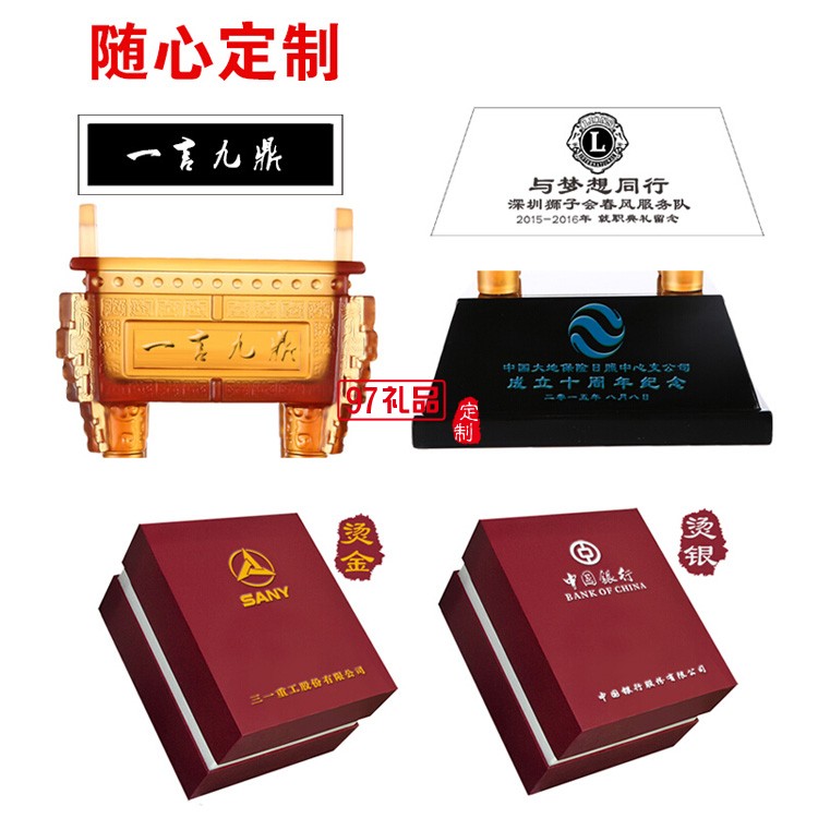 適用范圍:商務(wù)饋贈、頒獎紀念、展銷會、周年慶典、開業(yè)典禮、員工福利 定制流程:選中商品提出定制需求,免費策劃設(shè)計,確認樣品下單, 簽署合同支付定金,收貨支付余額,售后啟動,免費熱線:400-0197-908