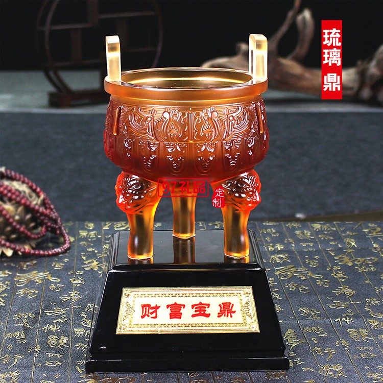 大號基業(yè)鼎盛琉璃鼎擺件古法琉璃工藝品 可定制LOGO