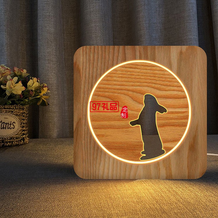 中秋禮品 木制LED燈 電子產(chǎn)品禮品創(chuàng)意裝飾臺(tái) 可定制logo