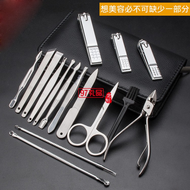 不銹鋼修甲工具家用去死皮老繭鉗指甲剪套裝14件套可定制LOGO