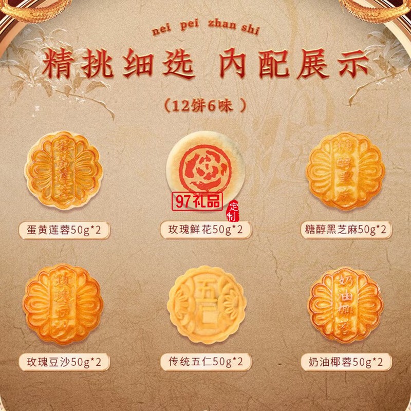 稻香村傳統(tǒng)老月餅五仁豆沙椰蓉混合中秋送禮團(tuán)購 八月十五團(tuán)圓禮6味12餅