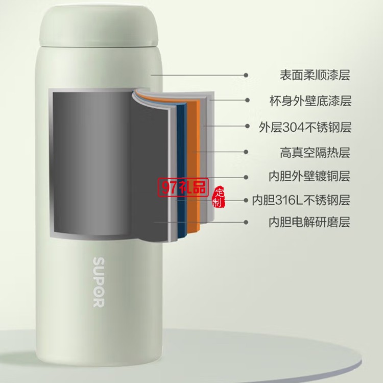 蘇泊爾保溫杯真空保溫316L不銹鋼水杯KC38FP11定制公司廣告禮品
