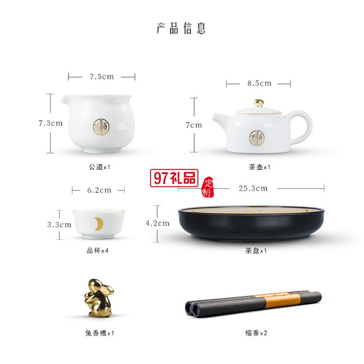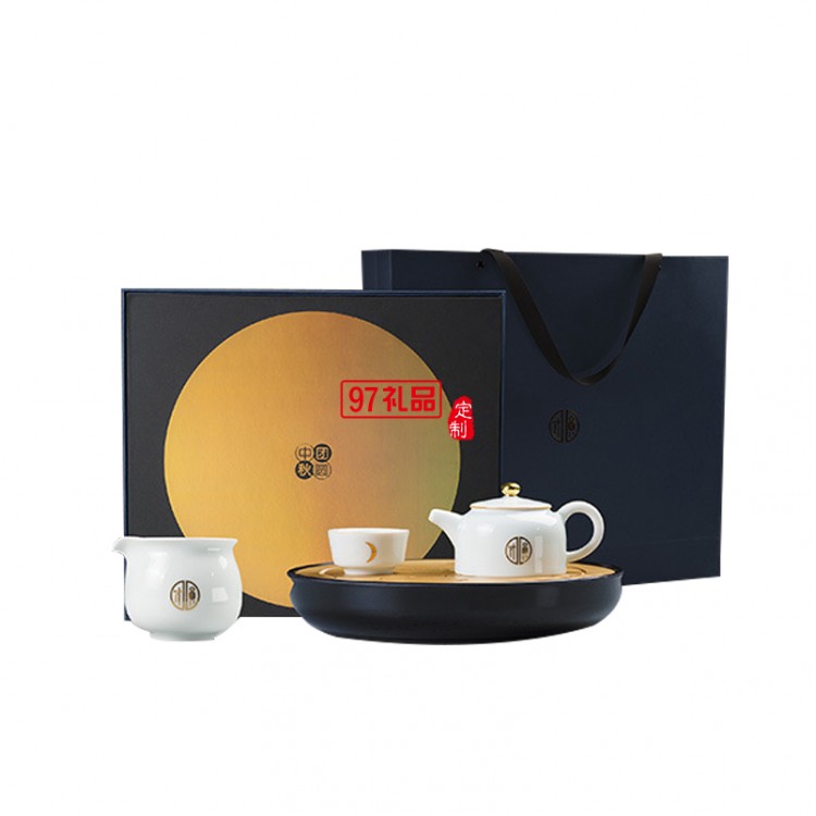 鵝絨白中秋團圓茶禮旅行便攜整套茶具新款送禮中秋禮盒創(chuàng)意禮品