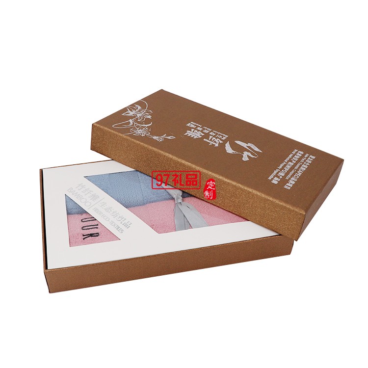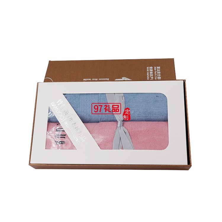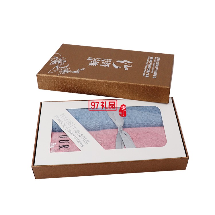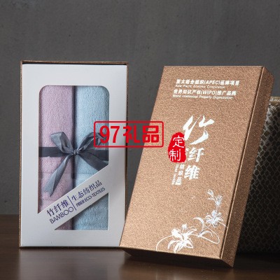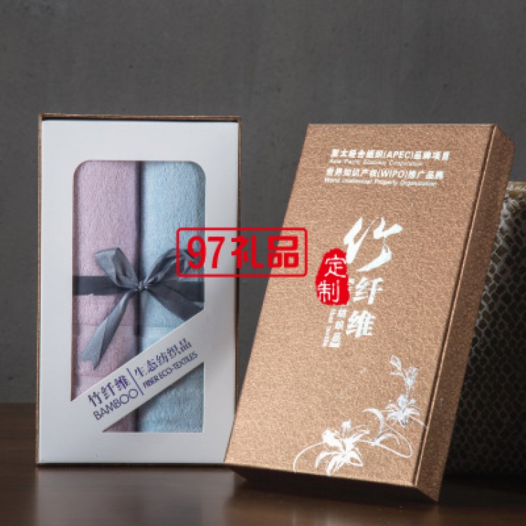 竹纖維毛巾2條禮盒裝面巾套裝定制企業(yè)禮品logo