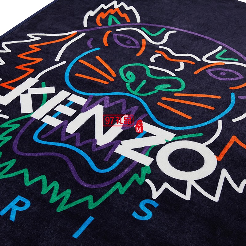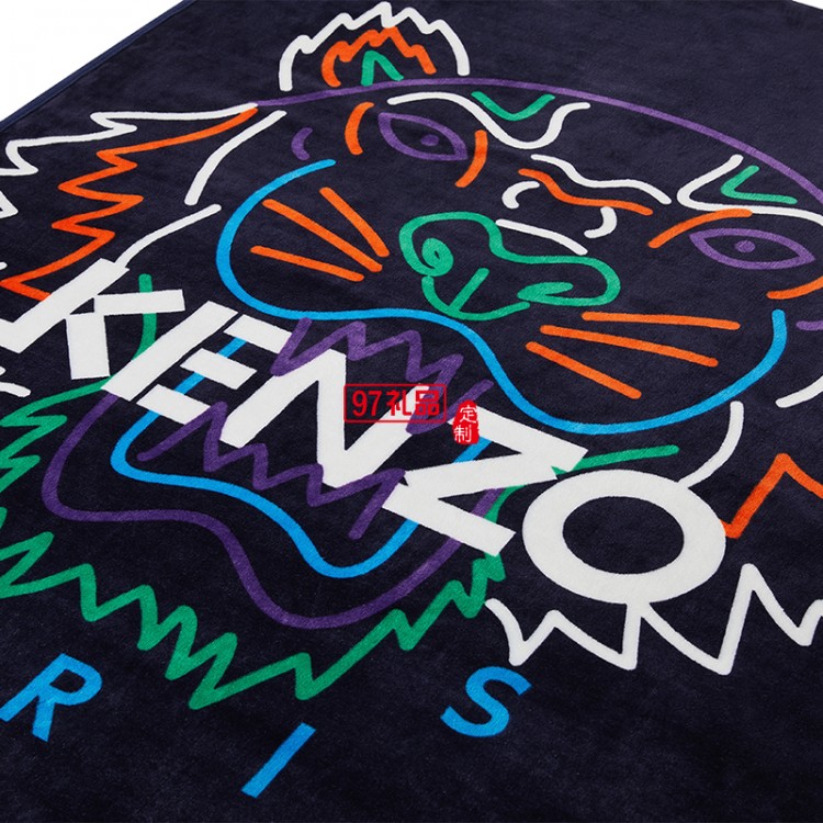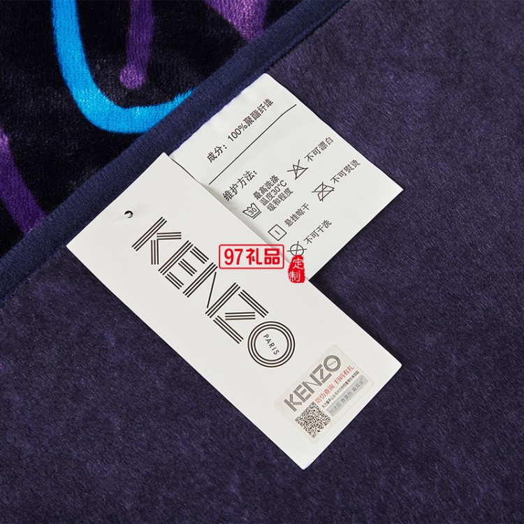 KENZO經(jīng)典法蘭絨炫彩虎頭毯(藍(lán))