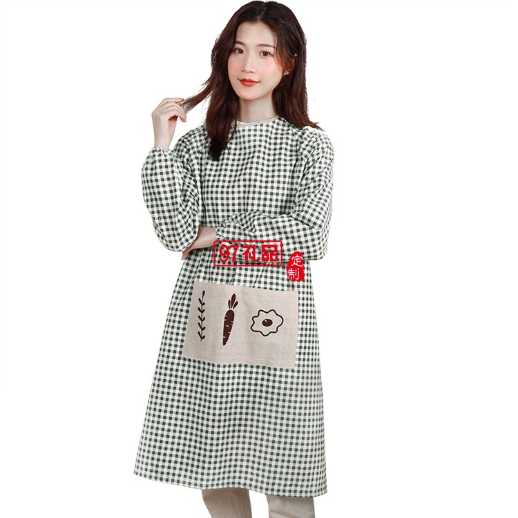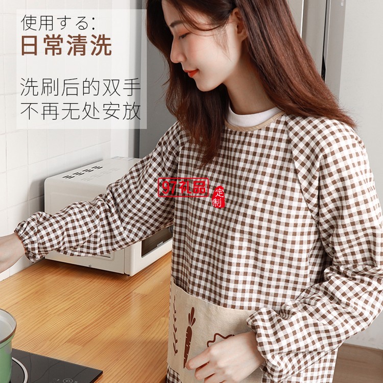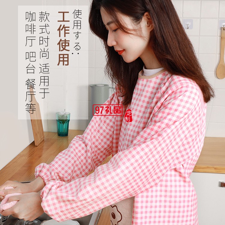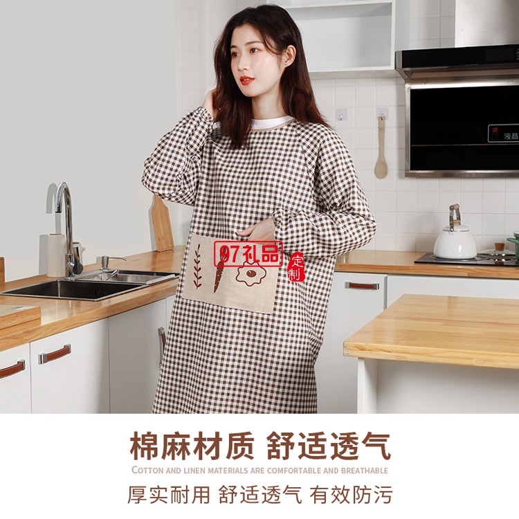 廚房罩衣女做飯大人長袖加厚純棉麻工作服定制公司廣告禮品