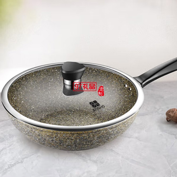 麥飯石不粘鍋多功能炒鍋30cm炒菜鍋LC30G2定制公司廣告禮品