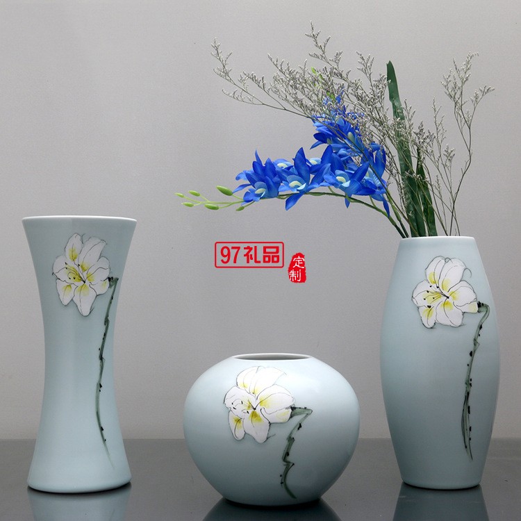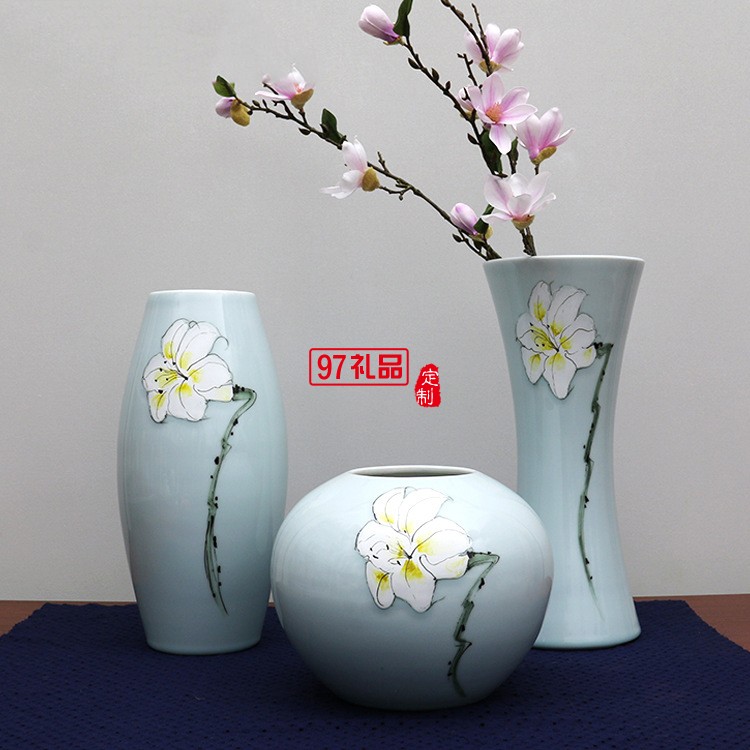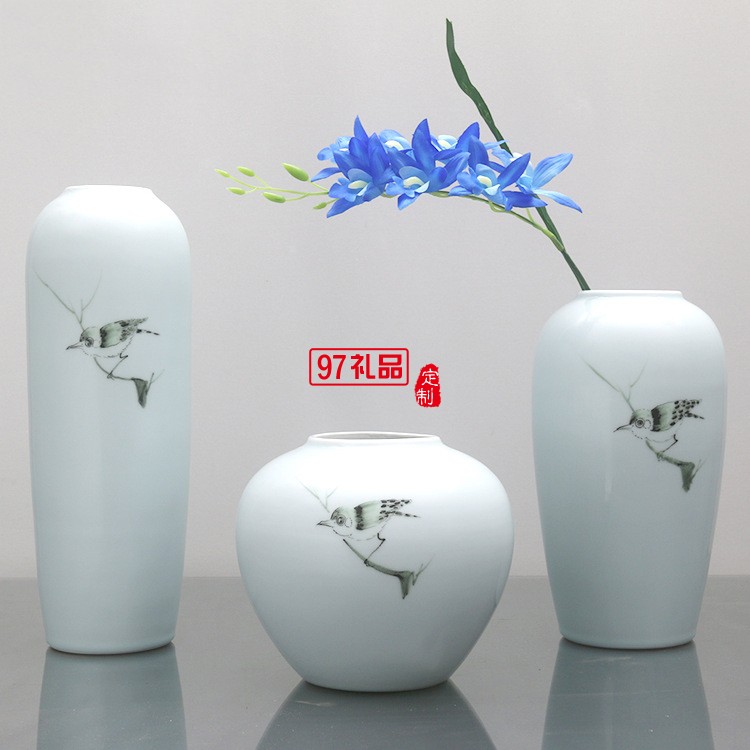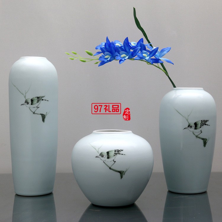 清茗居批發(fā)創(chuàng)意擺件簡約現(xiàn)代家居工藝品景德鎮(zhèn)手繪陶瓷花瓶花器