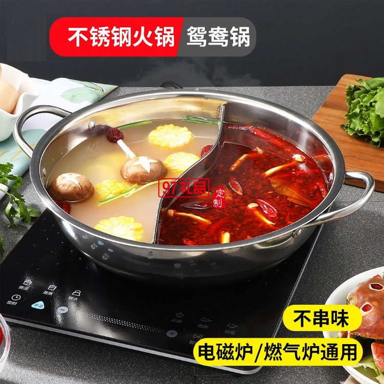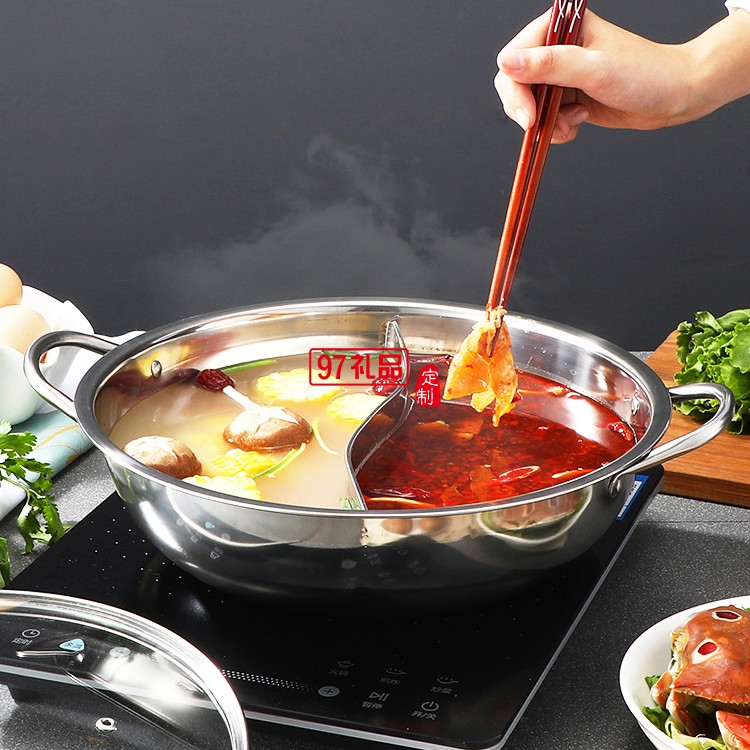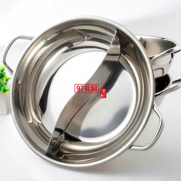 鴛鴦鍋火鍋盆加厚不銹鋼電磁爐涮鍋雙味鍋清湯鍋定制公司廣告禮品