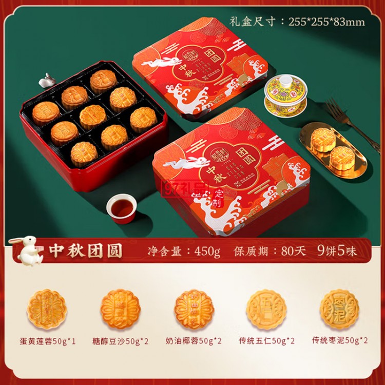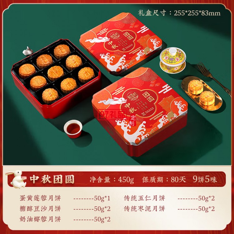 中秋節(jié)商務送禮團購福利 稻香村中秋團圓450g【鐵盒9餅5味】