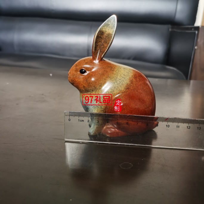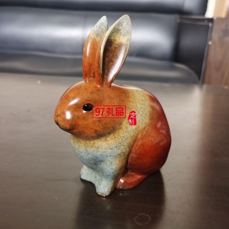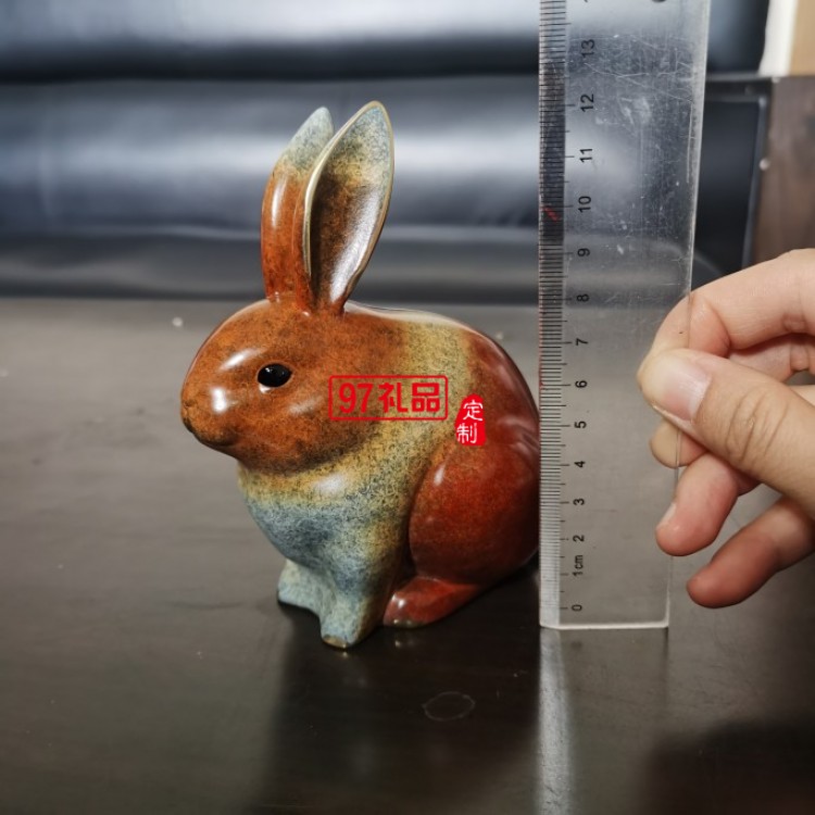 朱炳仁銅擺件奔躍前兔禮盒送禮定制公司廣告禮品