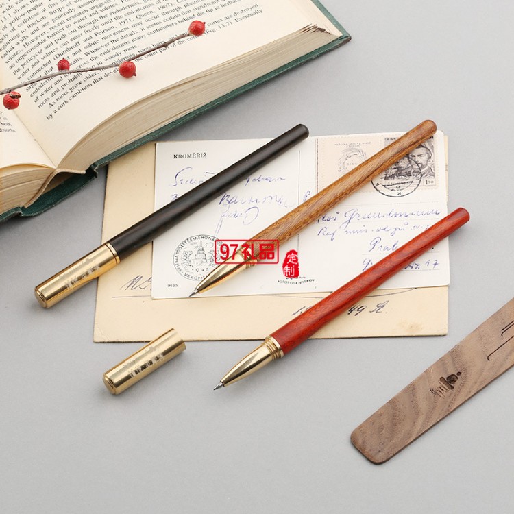 匠心之筆檀木質(zhì)簽字筆金屬黃銅筆高檔紅木商務(wù)禮品筆定制刻字logo