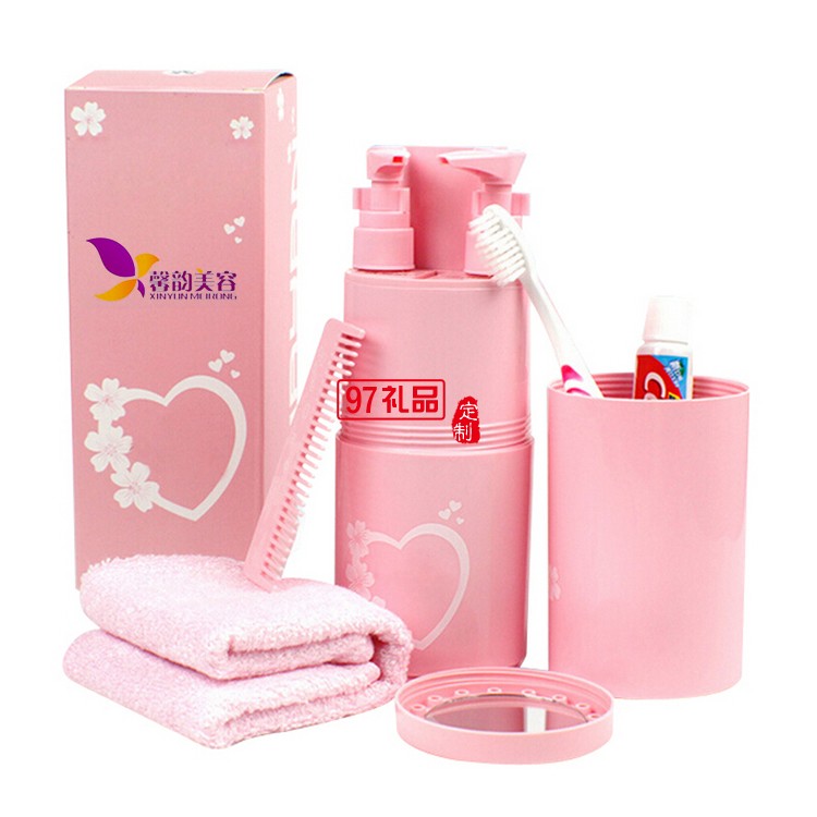 配置:洗發(fā)水瓶+沐浴乳瓶+洗漱杯+梳子+鏡子+高露潔牙膏40g+竹纖維毛巾+牙刷