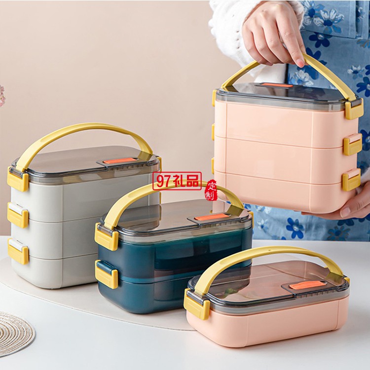 304不銹鋼手提便當(dāng)盒多層餐盒上班族學(xué)生帶飯飯盒定制公司廣告禮品