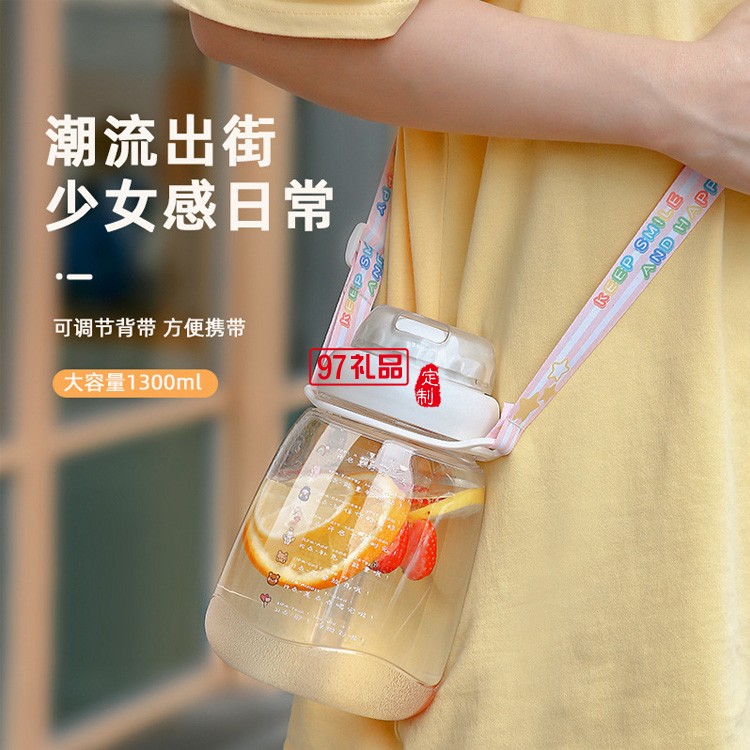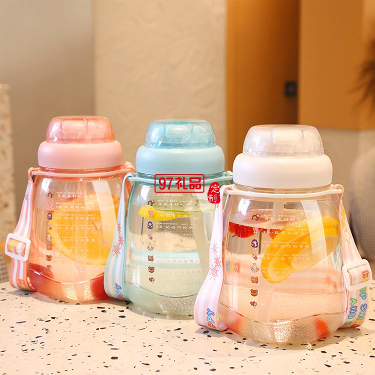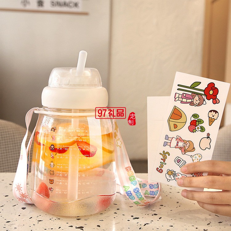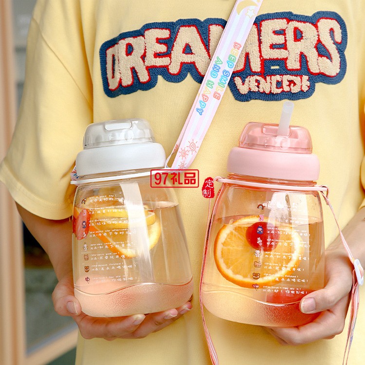 ins大肚塑料水杯帶背帶高顏值網(wǎng)紅便攜吸管杯超大容量水壺