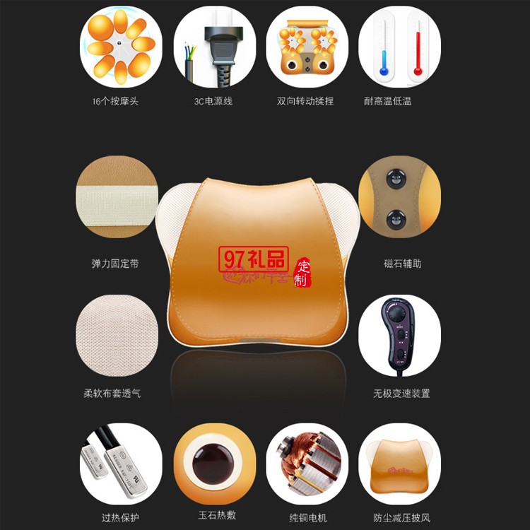 多功能頸椎按摩器電動頸部腰部肩部枕頭定制公司廣告禮品