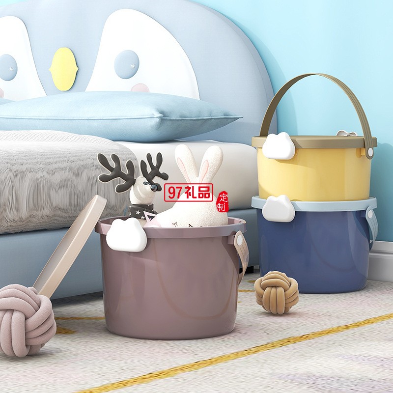 兒童玩具手提桶積木包裝桶塑料桶12L食品PP圓型收納桶禮品