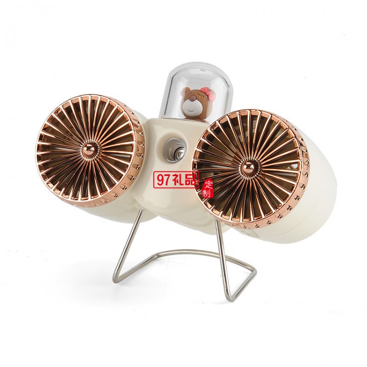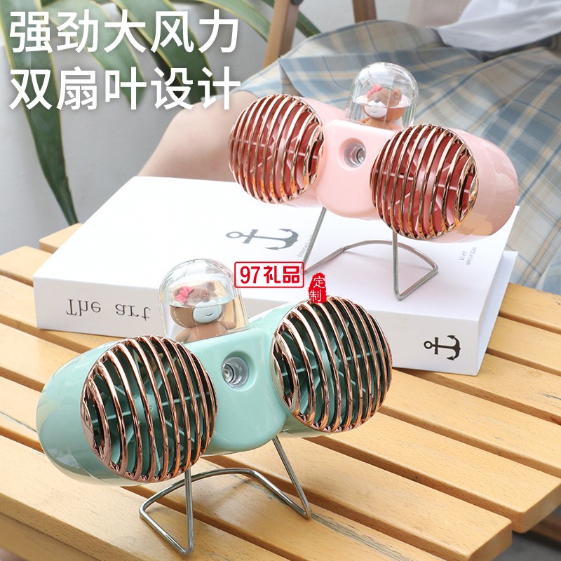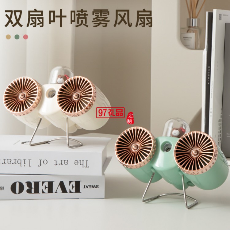 新款復(fù)古雙扇葉噴霧保濕小風(fēng)扇USB充電居家辦公桌面噴霧2合1風(fēng)扇