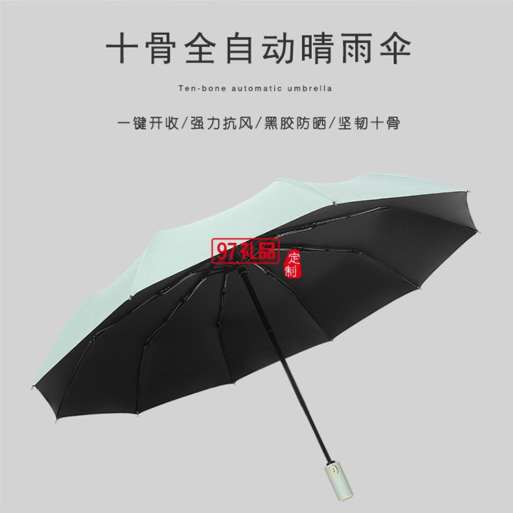 新款跨境黑膠十骨折疊遮陽傘三折防曬太陽傘全自動(dòng)晴雨傘