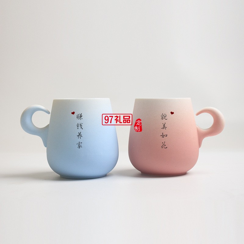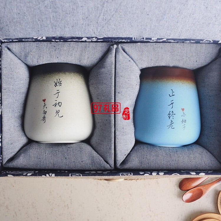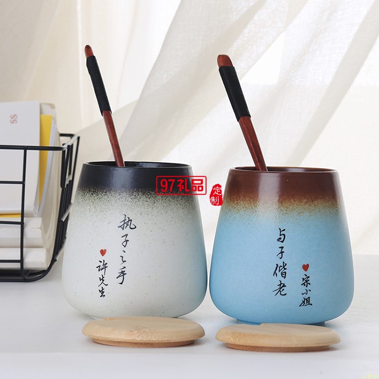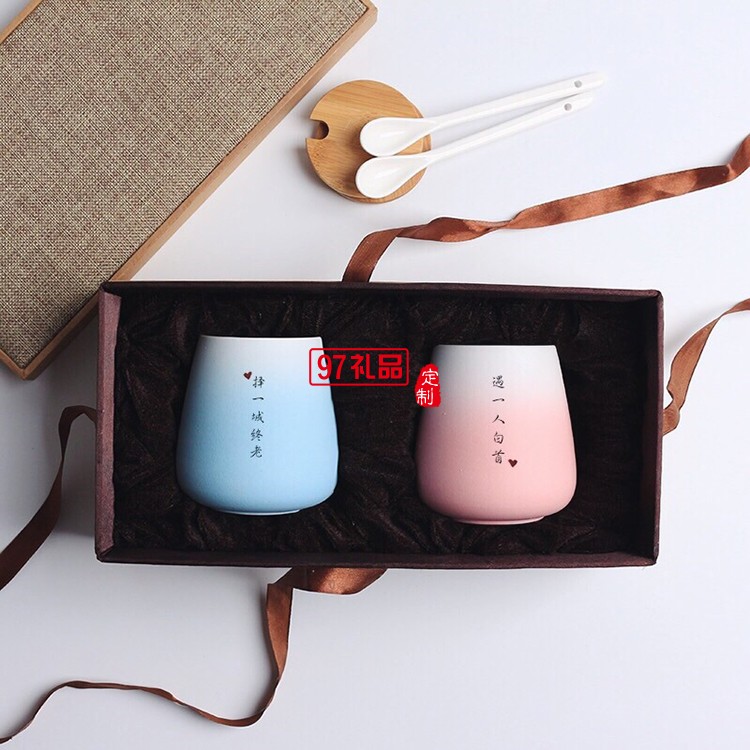 結婚禮物陶瓷杯情侶杯子 一對馬克杯帶蓋勺定制diy刻字景德鎮(zhèn)水杯