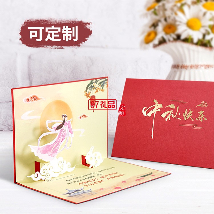 高檔燙金激光立體中秋賀卡企業(yè)定制員工3D中秋節(jié)禮品祝??ㄆ?