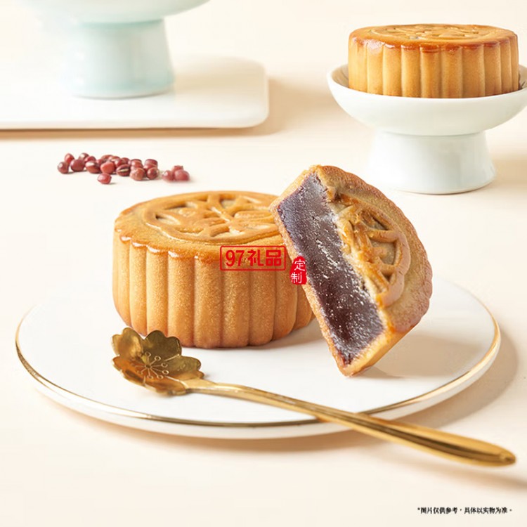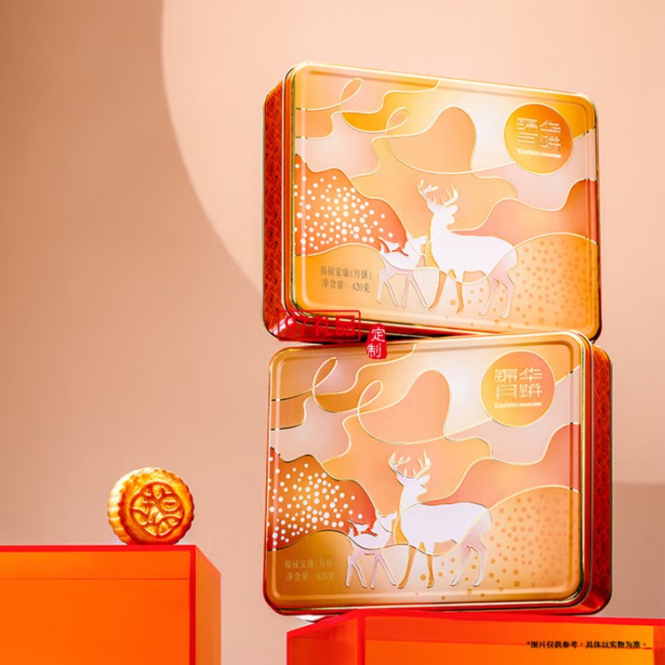 月餅禮盒蛋黃蓮蓉月餅純正紅豆沙月餅中秋團購送禮 錦華福祿安康420g